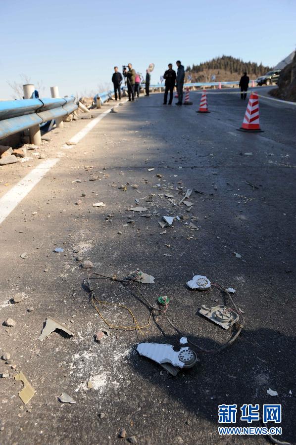 3月3日拍摄的事故现场。 3月2日23时许,一辆从河南新乡市开往林州市的大巴车在两市交界处(省道S226公路45+800米)发生交通事故,坠下陡坡,共造成20人死亡,13人受伤。新华社记者朱祥摄