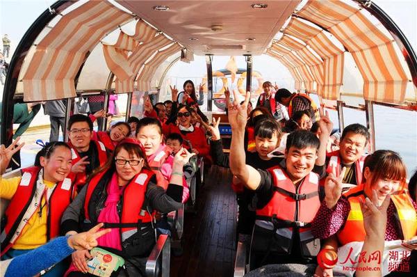 人民网十堰3月9日电 8日,南水北调中线工程核心水源区湖北省十堰市郧阳区开通水上旅游船,两艘旅游船生意火爆,从市区驱车前来乘船观江的游人一批又一批,丹江囗大坝加高畜水后水面扩大,成为天然观水旅游的好去处。图为前来乘船水上游的游人。(周家山 摄)