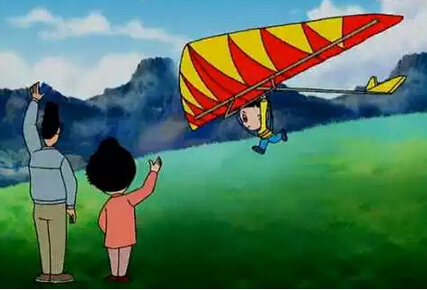 2002年版《真想飞上天》一集,大头儿子想飞,父母想尽办法,后来用了滑翔翼。滑翔翼虽然在1980年代末已传入中国,但到最近几年才开始平民化,以前玩是很贵的。
