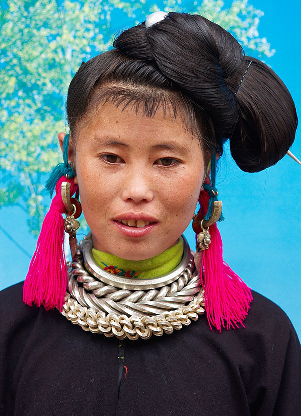 中国贵州省黑苗族女性通常喜欢用鲜艳色彩和珠宝打扮自己。(网页截图)