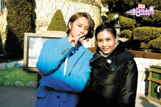 金希澈(左)美梦成真与邱淑贞做了“一日情侣”