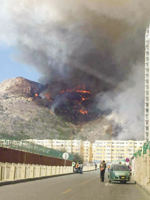 3月22日拍摄的大连市大黑山山火现场 ■据新华社