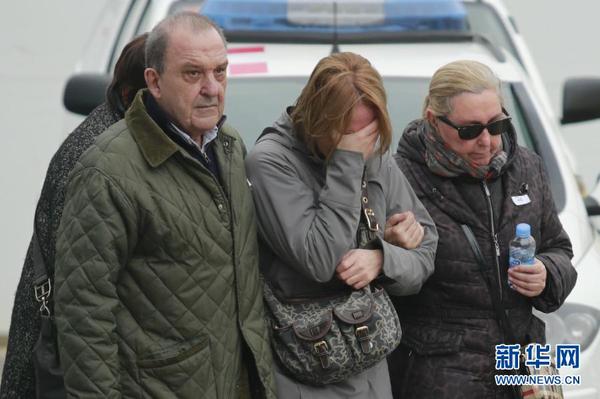 3月24日,失事客机乘客家属在西班牙巴塞罗那机场哭泣。当日,德国之翼航空公司由西班牙巴塞罗那飞往德国杜塞尔多夫的4U9525次航班在法国南部坠毁。巴塞罗那机场目前接待了一部分失事客机乘客家属,并为他们安排了住宿。新华社发(保·巴雷尼亚摄)