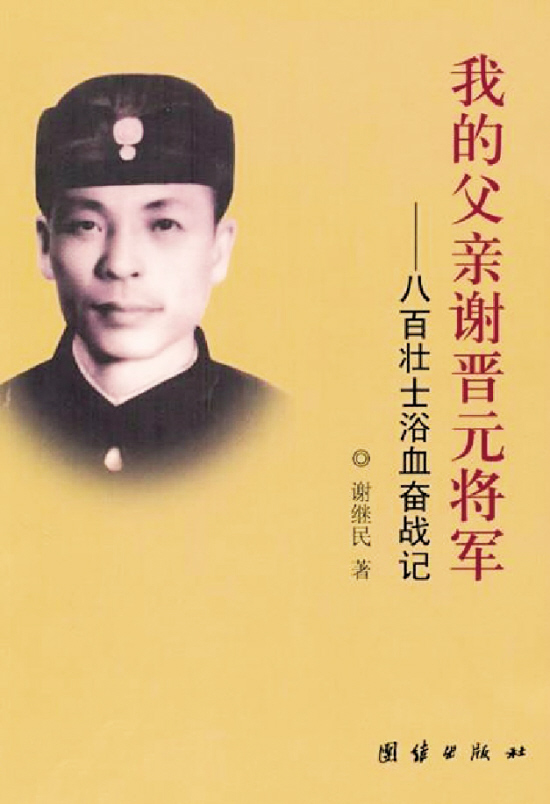 9)四行仓遗址已于1985年9月被上海文物保管委员会批准为抗日纪念地。图为谢继民的著作《我的父亲谢晋元——八百壮士浴血奋战记》