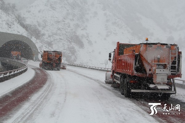 天山网讯(通讯员邓虎摄影报道)3月30日中午,新疆果子沟持续降雪,路面积雪厚度已达20cm左右,气温持续走低,多路段路面结冰严重,加之大部分车辆没有准备防滑措施,为了行车安全,当天13时30分,果子沟高速交警大队对G30线赛果高速K4161至4196+720路段实行双向交通管制。管制解除时间待定。提醒广大驾驶员,为了自己及他人安全,出行前请关注天气情况,下雪天提前做好防滑措施安全行车,遇见公路部门除雪车辆注意避让,严禁超车。