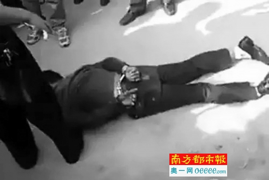 在狭窄的空间,钢叉不能发挥太大作用,反而影响抓捕,司徒积山只好丢掉钢叉,瞅准时机,上前抓住中年男子持刀的手臂,蔡启威和梁赵锋也连忙上前帮忙,但由于中年男子身材高大,加之情绪失控,异常狂躁。民警三人只好合力用身体死死将中年男子摁在地上。