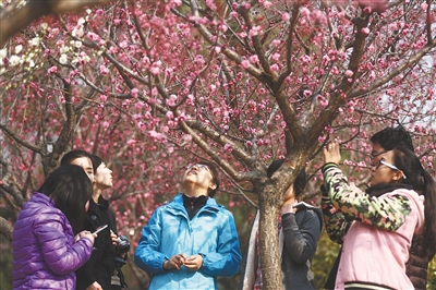 北京市植物园有关负责人介绍,上周末北京植物园迎来了赏花小高潮,园内两天共接待游客六万余人次。南湖周边、科普馆周边以及梅园成为了游客观花赏景的最佳场所。