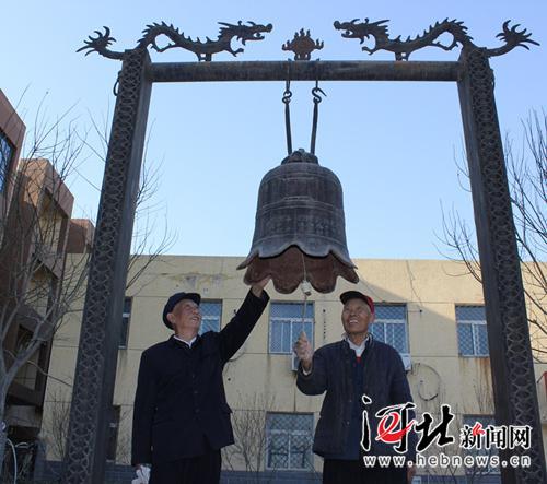 钟鼓象征吉祥,寄托着古代人民的美好愿望。在廊坊市大厂回族自治县祁各庄镇祁各庄村村委会院内,完好无缺地挂着一口百年铁铸古钟,在这附近居住的人们,总能时不时地听到优美的钟声。古钟重约100斤,高约80厘米,钟口直径约60厘米,钟口呈花瓣状。在钟的顶部四个方向各有一个小洞。钟面上写有铸造时间是大清同治八年(1869年,至今已有146年历史),当时这个地方的名称叫“京都顺天府通州三河县西南路祁各庄”。轻轻地拉动钟锤,其声音清脆悦耳,绵绵地萦绕在耳边。董永水、陈硕 摄影报道