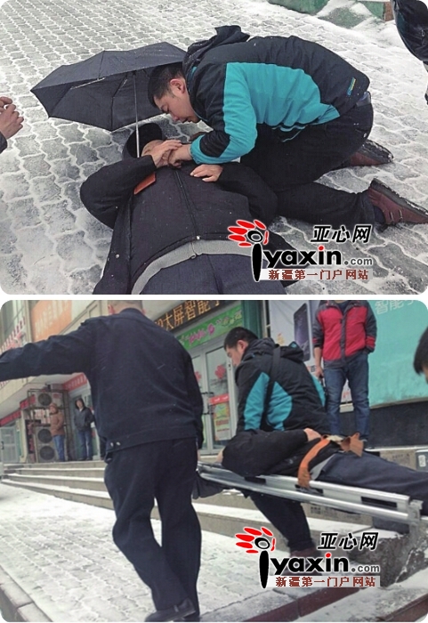 原标题:乌鲁木齐市一老人冰坡摔倒路人急救 遗憾终离世家属感激路人援手