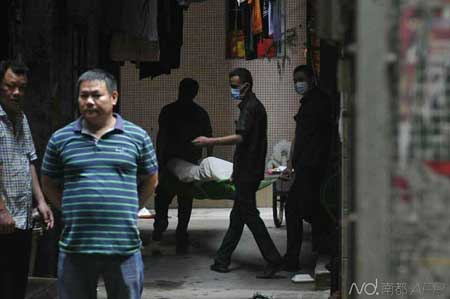 女受害人的尸体被抬离现场。南都记者梁炜培摄