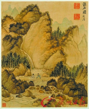 而就山水册页而论,明代以沈周、文征明、唐寅、仇英为代表的四大家率先揭开了册页创作的高潮序幕。四家均活跃于苏州,当时的苏杭为一方文人墨客的荟萃之地;另一方面,市民的商品经济异常活跃,于是导致了绘画的商品化倾向,他们的创作除供应市场需求之外,当然也包含了自娱的性质。事实上,由于当时苏州的商品经济也带有浓厚的儒雅色彩。因此,市场的需求和自娱的要求两者之间不是矛盾的,而是相互统一的关系,正是在这样的市场需求下,作为职业画家的仇英,其创作不仅没有庸俗化,反而充满了儒雅的气息,即所谓的“精工而有士气”。“精工而有士气”,是明代中期普遍的审美准则,所谓“精工”是指笔墨技艺的细巧,所谓“士气”则是指风格意境的高雅,生活于苏杭的“城市山林”的文人士大夫们,心境已经明显不同于宋元的文人,变得相当的婉约、细腻,一如苏州的园林建筑,不再有宏伟高远的气魄可言。因此,对小的玩味,远远超过对大的推崇。而小品册页画就成了最适合于表现“精工而有士气”的一种画幅形式。![]()