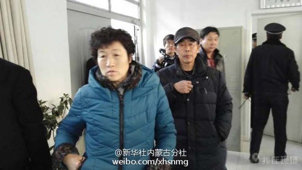 呼格父母走进呼和浩特中院来客来访接待室