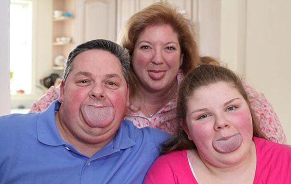 国际在线专稿:据英国《每日邮报》4月16日报道,美国纽约州雪城(Syracuse)47岁男子拜伦·施兰克(Byron Schlenker)与14岁女儿艾米丽(Emily)都是吉尼斯世界纪录保持者,他们拥有世界上最宽的舌头,甚至超过iPhone 6手机宽度。