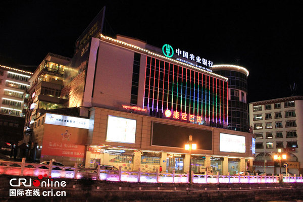 夜色下当地著名的康定百货商城(摄影 廖继勇)