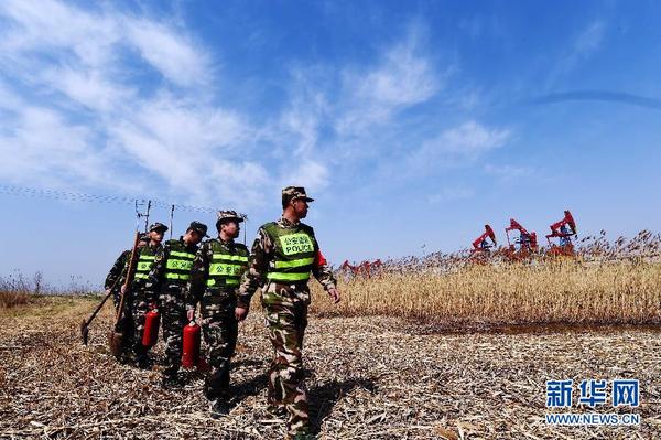 4月17日,小柳边防派出所官兵在芦苇荡里进行防火巡查。每年春季,由于农民烧荒等原因,辽宁凌海大有农场里尚未收割的干燥芦苇成为防火重点对象。大有农场辖区内的锦州边防支队小柳边防派出所官兵在春季加强防火巡查,增加巡逻班次,确保苇场春季安全。新华社记者杨青摄