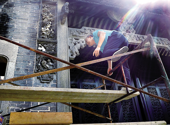 李继光修缮陈家祠百年砖雕 羊城晚报记者 郑迅 摄