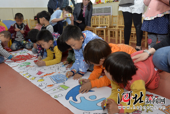 4月21日,石家庄长安区花香幼儿园的孩子们在给石家庄特殊教育学校七彩阳光幼儿园的师生们表演舞蹈。七彩阳光幼儿园的孩子们多是听障儿童,在学期内免除教学费,并终生需要语言康复培训。当日,花香幼儿园的孩子们给这些听障儿童们带去了玩具、学习用具等礼物,并与他们一起进行了绘画、舞蹈等联谊活动,让这些听障儿童感受到世界充满了爱。