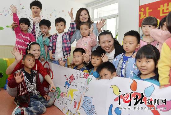4月21日,石家庄长安区花香幼儿园的孩子们在给石家庄特殊教育学校七彩阳光幼儿园的师生们表演舞蹈。七彩阳光幼儿园的孩子们多是听障儿童,在学期内免除教学费,并终生需要语言康复培训。当日,花香幼儿园的孩子们给这些听障儿童们带去了玩具、学习用具等礼物,并与他们一起进行了绘画、舞蹈等联谊活动,让这些听障儿童感受到世界充满了爱。