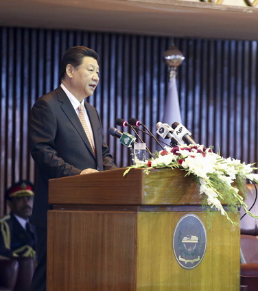 学习路上按:21日,国家主席习近平在巴基斯坦议会发表题为《构建中巴命运共同体开辟合作共赢新征程》的重要演讲。期间,议员们50多次拍击桌子和鼓掌,对习近平的演讲表示认同和支持。这一幕,中文里有个形象的词语来描述,即“击节叫好”。将近5千字的演讲,就赢得了巴铁50次“击节叫好”。习主席说了哪些精彩话语?学习路上为您摘录。