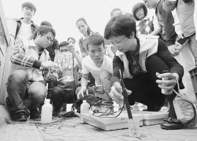 22日是世界地球日,百名福州大学城各高校环保社团的志愿者在溪源江边举行“守护溪源江、爱我大学城”启动仪式。志愿者对溪源江上下游的污染进行全面调查和水样采集分析调研。 本报记者 关建东 摄