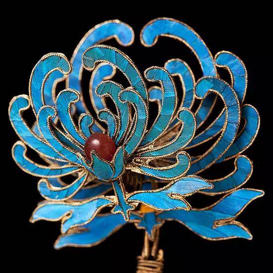 点翠是中国传统的金银首饰制作工艺,京剧青衣常用的头面之一,根据所使用的翠鸟羽毛大小又分为硬翠和软翠。点翠最早出现在汉魏时期,乾隆时代工艺水平已达顶峰。看过《甄嬛传》的乡亲们,对“华妃娘娘”头上的“点翠”都不会陌生,据说“华妃”头顶中间的大凤是当年的真品,如今市价一套点翠售价将近100万元。