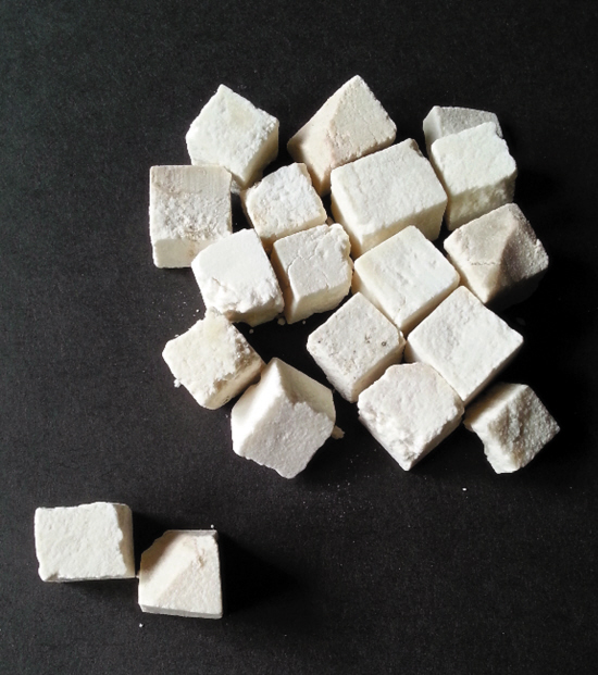 选材要点:完整的茯苓呈椭圆形、扁圆形或不规则团块,大小不一,外皮薄,呈棕褐色或黑棕色,质坚实。而精制后的白茯苓则为方块状,略粗糙,质坚硬,气微味淡。茯苓储存时要注意防潮、防热、防霉变。![]()