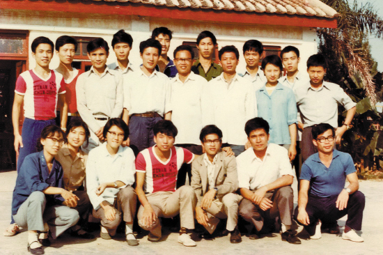 汪国真(二排左二白衣者)和同学们的合照(暨南大学提供)