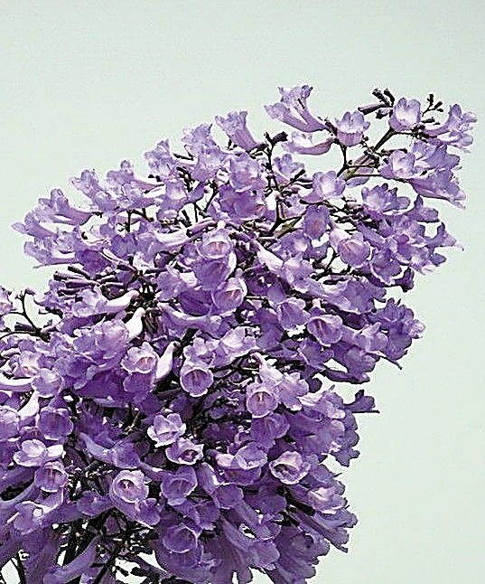 最近,广州街头常见一种树顶开着灿烂紫蓝色花的观赏木,从它的叶与树型来看,极易被人认为是另一种叫“凤凰木”的观赏木,其叶片形状又很像害羞草叶——它的名字其实叫蓝花楹,属紫葳科落叶乔木,原产南美洲巴西,是中国近年来引种栽培的观赏木之一。