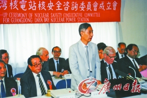 1988年8月12日,王全国同志在大亚湾核电站安全咨询委员会成立大会上致辞。