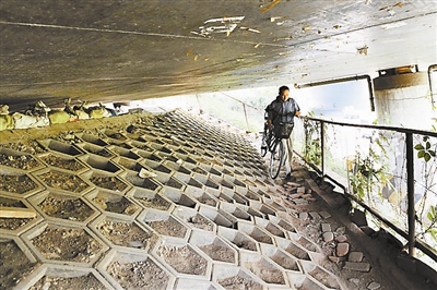 到了2010年5月,居民们实在觉得这条小土路太脏太危险,于是133个年轻居民筹了近1万元钱,请了一个施工队,把土路铺上地砖,还在地铁桥下的斜坡旁边修了一个“桥下桥”,这样以后居民们都不用再爬坡了。“当时我交了100块钱,打桩铺路浇水泥亲自上阵。”旗胜家园的居民崔原说。