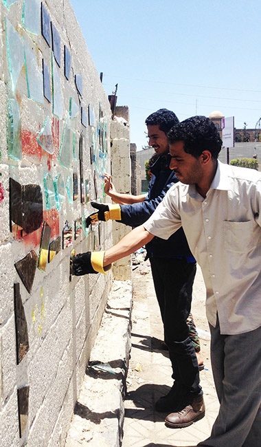 在四天时间里,芙塞伊带领众人在墙壁上用玻璃碎片拼贴起一面也门国旗,以纪念在战争中死去的人们,也象征着这个国家会坚强前行。