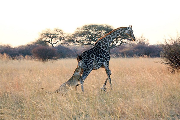 非洲母狮艰苦缠斗撕打咬死高大长颈鹿(高清组图)