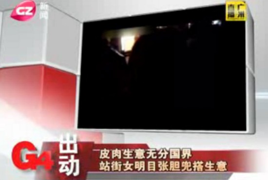 人民网北京5月1日电 据广州市广播电视台《新闻日日睇》报道,越秀区小北路地铁站一带“站街女”现象有死灰复燃之势,而且皮肉生意无分国界。报料人称,“小北路段转入小北花圈一带,化妆比较妖艳一点,一个外国人给她们一张卡片示意她去那间酒店,然后两个人就上了的士。”