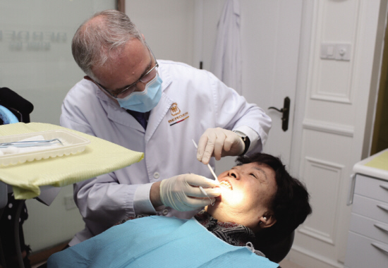 Jan正为“康婶”做口腔检查。5月10日,Jan为“康婶”种牙的全程将通过大屏幕在星海音乐厅播放。