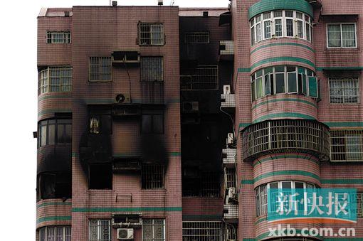 ■出事单元外墙被熏黑。