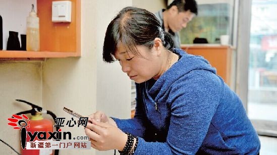 5月7日14时,乌市幸福花园4期一家理发店内,店主蒲小龙坐着发呆,他的妻子何玉红看着女儿生前的照片,夫妻二人沉浸在悲痛中。亚心网记者豆兴军 摄