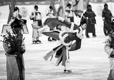 冰嬉亦称“冰戏”,在《宋史》中就曾有记载:皇帝“幸后苑,观冰嬉”。尽管历经朝代变更,如此活动始终传承。明朝开始,“冰戏”更是成为宫廷体育活动。