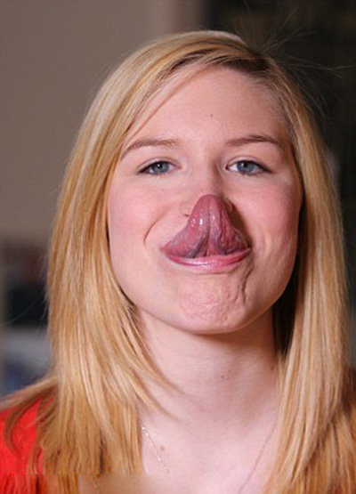 别看她才18岁,舌头已经有10.16厘米长。刘易斯可以用长舌够到自己的鼻子、下巴,用手帮忙甚至能够到眼睛。她还在网上开设频道,向众人展示自己的“长舌功”。