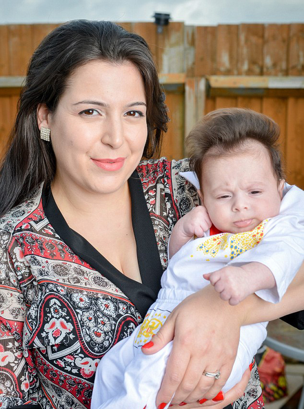 2014年10月27日消息(具体拍摄时间地点不详),10个月大的婴儿George出生就惊人地自带卷发,并形成一个波型,看起来像猫王的发型一样。