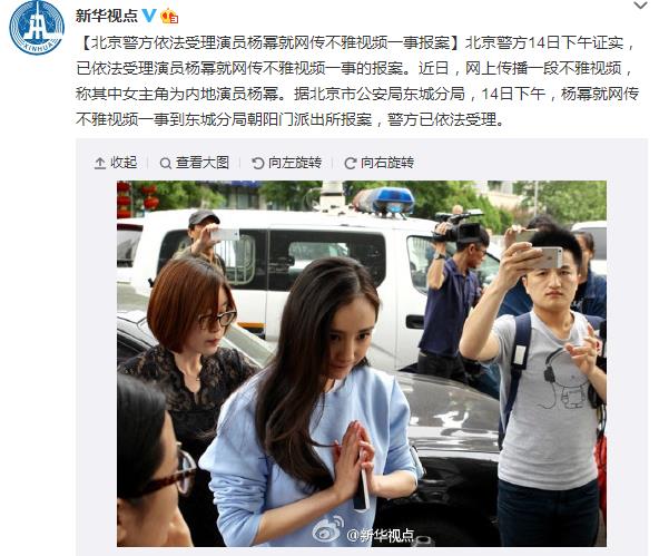北京警方依法受理杨幂就网传不雅视频一事报案