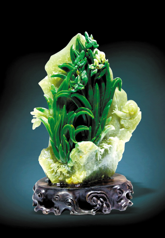 陈金城:这几年广绿玉一直在走出去,我们在不断地宣传,价格也在不停地上涨。广绿玉色泽丰富,质量和件头都很好,设计和工艺也好,但价格却十分便宜,所以这几年广绿玉在国内的每一次摆展都十分吸引人。跟其他玉石相比,广绿玉价格还是偏低,所以现在广绿玉是处在一个十分适合收藏的时期。
