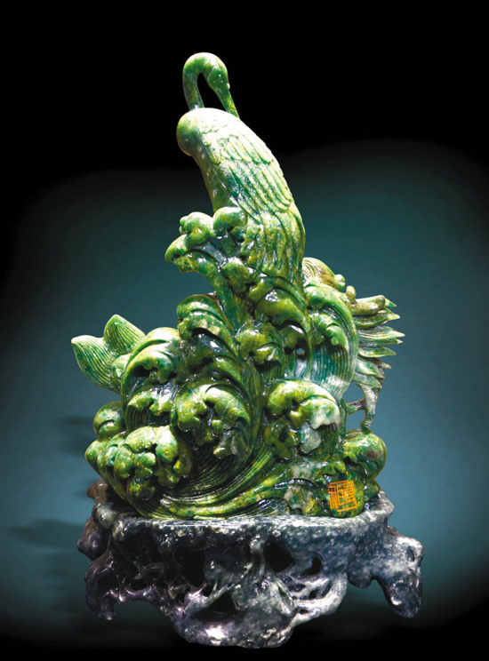 上世纪90年代后期到2000年左右,从生产出来的产品数量、产品设计、玩玉的人来看,广绿玉的发展都上了一个台阶。2000年以后,更是出现了很多玩广绿玉原石、广绿玉工艺品的人,广绿玉也开始进入收藏家的视线。也就是说,2000年后广绿玉进入了收藏的阶段。好的广绿玉作品价格开始慢慢地提高了。
