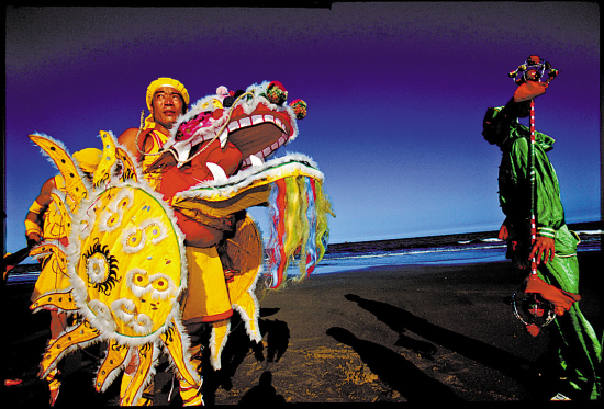 如今在东山镇,每年八月中秋期间,全镇东西两街的“人龙舞”仍会连演三个晚上。大家尽情欢乐,以“庆盛世,迎丰收,娱佳节,乐民众”,场面热闹非凡。整条人龙舞动起来灵活多变,动作粗犷,形态逼真,其间锣鼓喧天,如惊涛拍岸,直看得人血脉贲张。我跟踪拍摄它多年,每次仍会被它宏大的群体力量所折服。