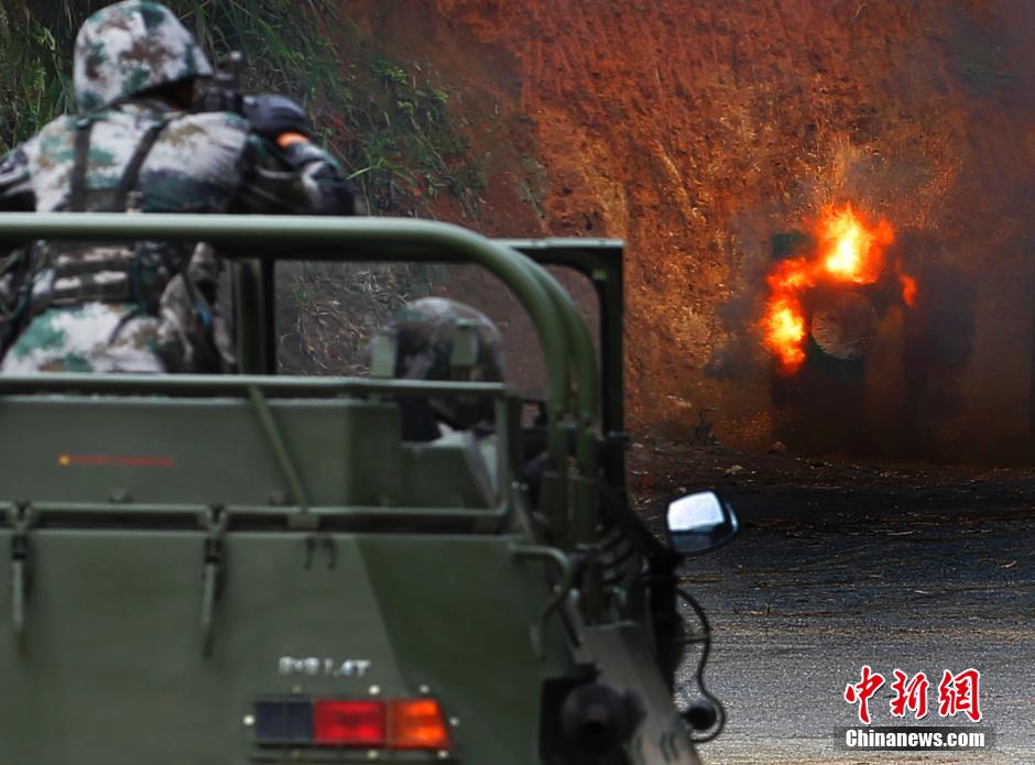 5月17日,中国国防部长常万全与越南国防部长冯光青一同观摩解放军河口边防营军事科目演示。中新社发 宋吉河 摄