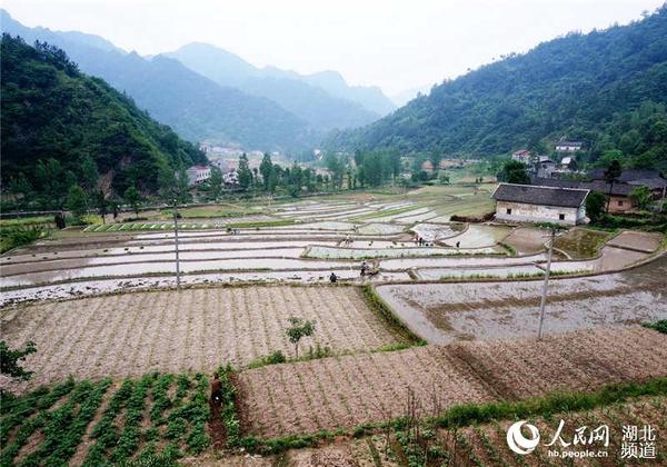 人民网十堰5月18日电 湖北省十堰市郧阳区鲍峡镇高桥村村民正在水田里插种胭脂米稻秧。由于胭脂米是古代贡品,生长在700米至900米的海拔高度上,使用山泉水和农家肥,亩产在400斤左右。自申报地标农产品后每斤胭脂米价格长至200元1斤。今年鲍峡镇将胭脂米扩大为1000亩种植规模,以满足市场需求。(周家山 摄)