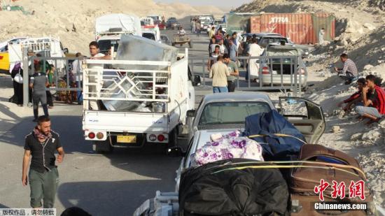 当地时间5月15日,伊拉克拉马迪,伊拉克民众离开家乡拉马迪,前往巴格达。极端组织武装15日攻占伊拉克西部安巴尔省会拉马迪市大部分市区,随后占领拉马迪市内政府大楼。