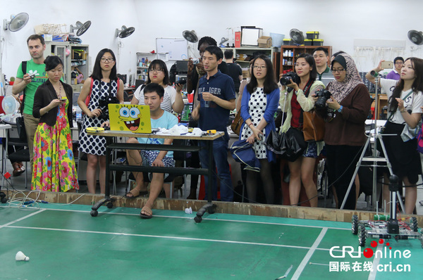 记者团实地走访厦门大学学生实践基地,并观看成果演示 摄影:张琨
