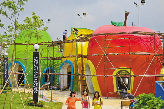 亮点:采用夸张的骑楼和广府建筑风格,建设入口门楼、儿童餐厅、儿童活动中心和动感天地。其中儿童餐厅由省级非物质文化遗产代表性传承人何世良,以灰塑传统工艺亲自创制卡通灰塑瓦脊;今年六一即将开放的场地以大中龄儿童活动为主。如迷彩野战基地、蜘蛛侠滑梯攀岩区、戏水脚丫池、渔乐溪、儿童影视特技摄影体验中心、挖掘机、穿虫洞等游戏项目。
