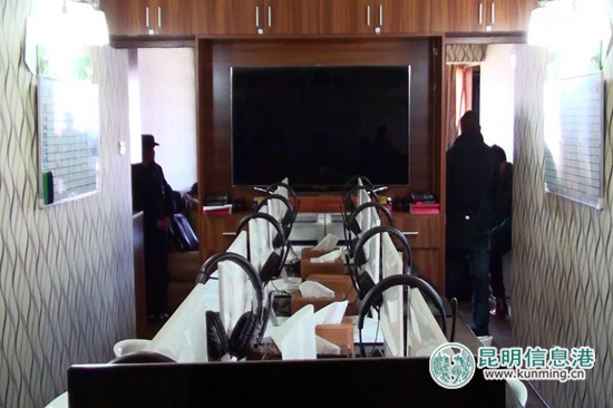 民警查获该窝点的“多媒体电教中心”,卖淫女就是在此上课。记者合宇聪/摄(图片来自昆明信息港)