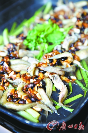 初夏时节, 濒临珠江的番禺化龙镇沙路口至复苏四七沙及莲花山、茭塘一带,白鸽鱼活蹦乱跳,不知多生猛。四海一品的大厨把它们带到餐厅,用干蒸法烹调。身材修长的白鸽鱼骨软、嫩滑、味鲜。